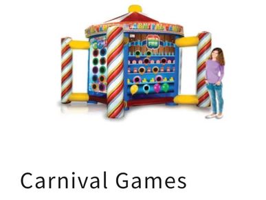 This 5 in 1 carnival games is a great piece to add to any event. Fun for all ages. It includes: colors- tossing game, wild fun- tossing game, tic tac toe tossing game, clown- tossing game, and candy darts- velcro darts.